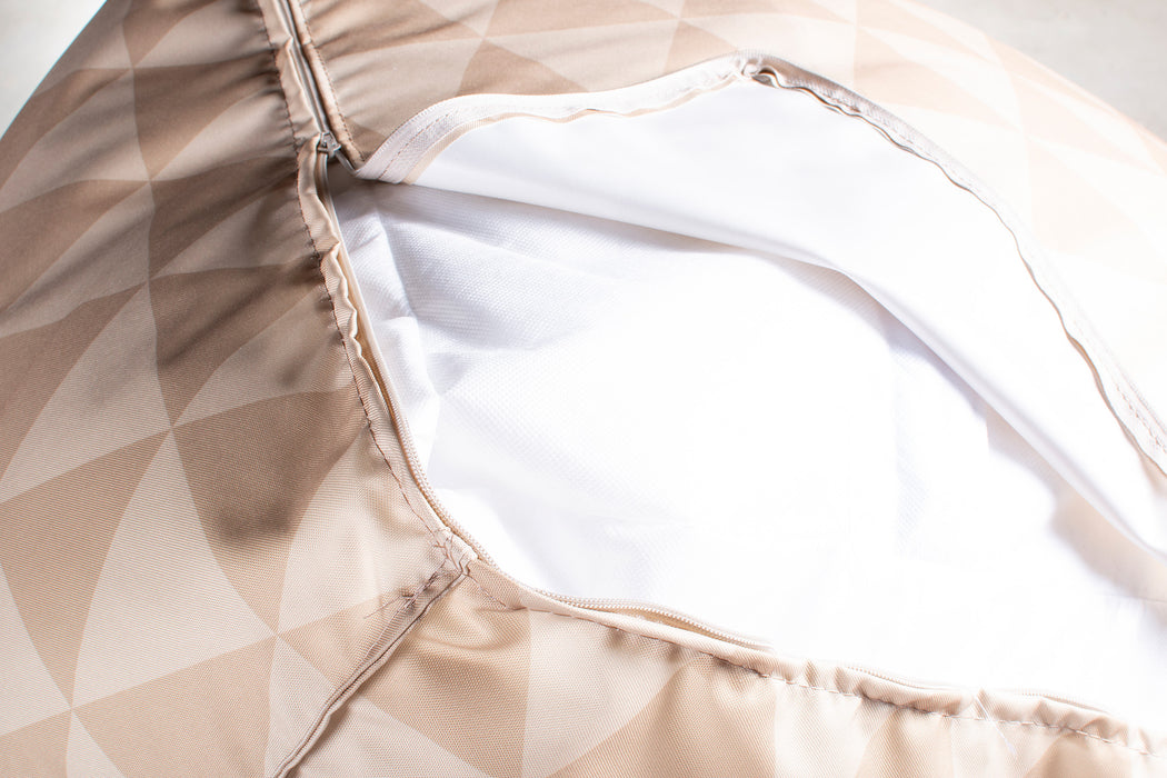 Unlike other bean bag chairs that use a simple zipper, all Avalon bean bags feature a double closure system (zipper + Velcro strap) that prevents the polystyrene beads from coming out and makes the bean bag safe even for the littlest ones.